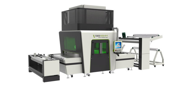 【大族粵銘激光】采用定制不銹鋼沖孔鏈板輸送帶配合流體力學分析吸附結構組成的輸送系統,吸附力大,運行平穩;