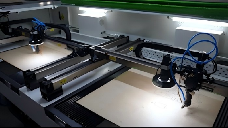 擁有兩套運動系統和兩個工作臺面,支持分別獨立控制,可同時異步工作,使兩個工作臺面切割不同的圖形,極大提高工作效率