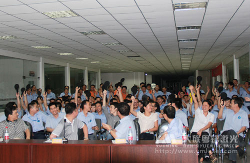 比賽的結果由觀眾評委和專職評委舉牌計分得出,實行交叉評分,充分體現了比賽的公平、公正、公開。最終,生產系統和客服系統以高票數贏得了比賽桂冠。卓勁松總經理和劉志軍副總經理分別為獲勝團隊頒發錦旗和證書,并合影留念。