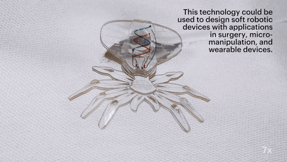 首先,借助軟印刷技術使用彈性硅膠材料打造出機器人的外形;