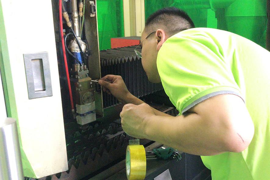 在該公司的生產車間里,“粵銘就在您身邊”售后回訪團的吳工對設備運行情況進行了細致的檢查,激光頭清潔、絲桿打油、線路檢查......邊維護保養,邊對車間操作員進行詳細講解,操作員說:“這臺設備上手容易,操作簡單,使用粵銘激光集團機器3年多來,切割效率高、切割工件誤差小、切面沒有毛刺和掛渣、性能穩定、運作良好。”同時,對粵銘激光集團售后服務人員的技術以及工作態度給予了肯定。