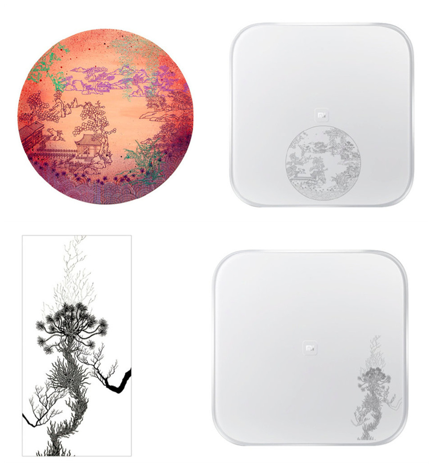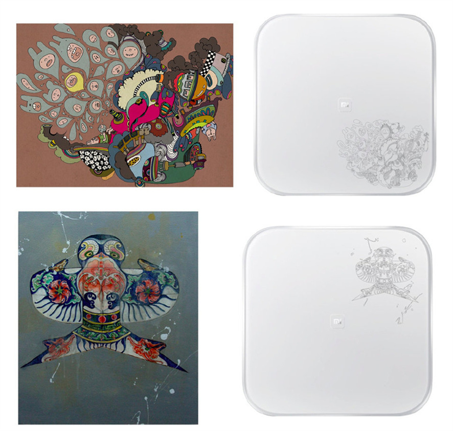 一系列由玻璃激光鐳雕機雕刻的藝術體重秤
