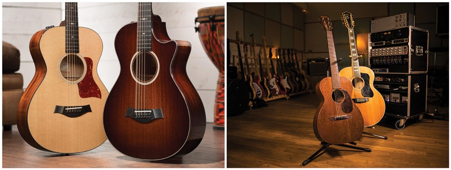 提起傳統(tǒng)木吉他,愛好玩吉他的人都會馬上聯(lián)想到頂級的兩大品牌:Martin(馬丁)和Taylor(泰勒)。兩者在吉他中的地位,相當于車中的法拉利與保時捷。