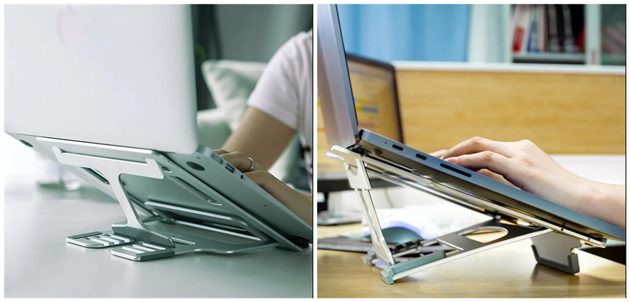 若用支架在筆記本電腦底部支撐就能抬高人的視線