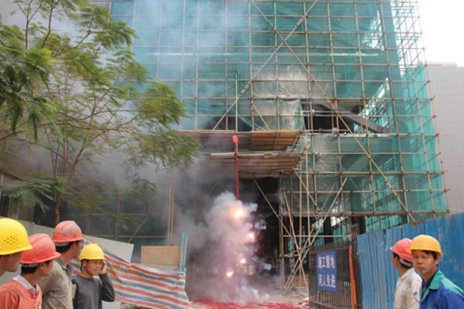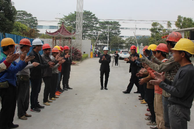 集團總部精密副總經理卓飛、總經理助理肖明晶、施工單位的領導及建筑工人均參加此次封頂儀式。首先,卓副總對大樓的順利封頂表示熱烈祝賀,向施工單位的辛勤勞動表示感謝。接著,由肖總代表集團給每一位施工者派發大紅包,預示來年紅紅火火、大吉大利!
