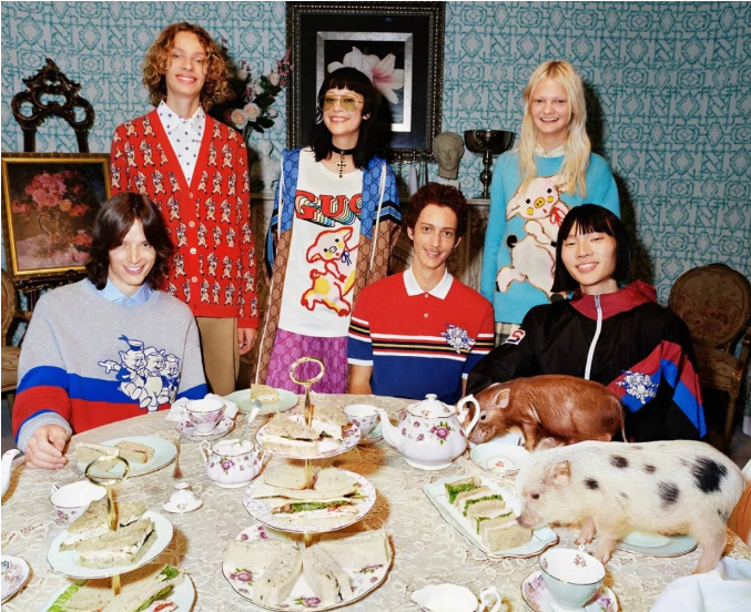 本次GUCCI豬年系列除了經典的雙環LOGO,最引人注目的便是“三只小豬” 激光切割貼布繡圖案了。可愛的豬豬貼布繡正是來自于迪士尼的經典動畫形象——《三只小豬》