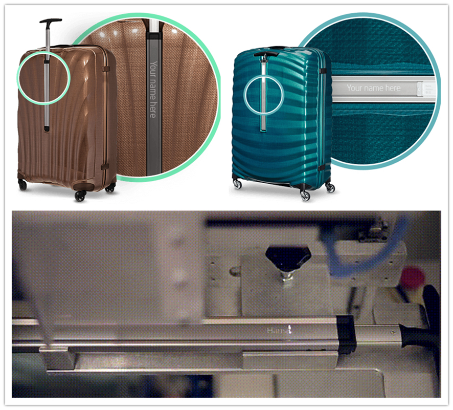 行李箱激光打標(biāo)機(jī)在拉桿上標(biāo)記姓名或具有個(gè)人特色的符號(hào)